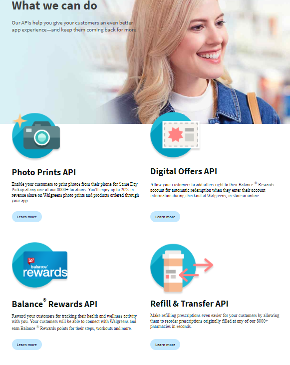 Walgreen’s in the US provide a number of APIs to several services such as photo printing. This has allowed app developers to send photos from a smartphone direct to a store to be printed.