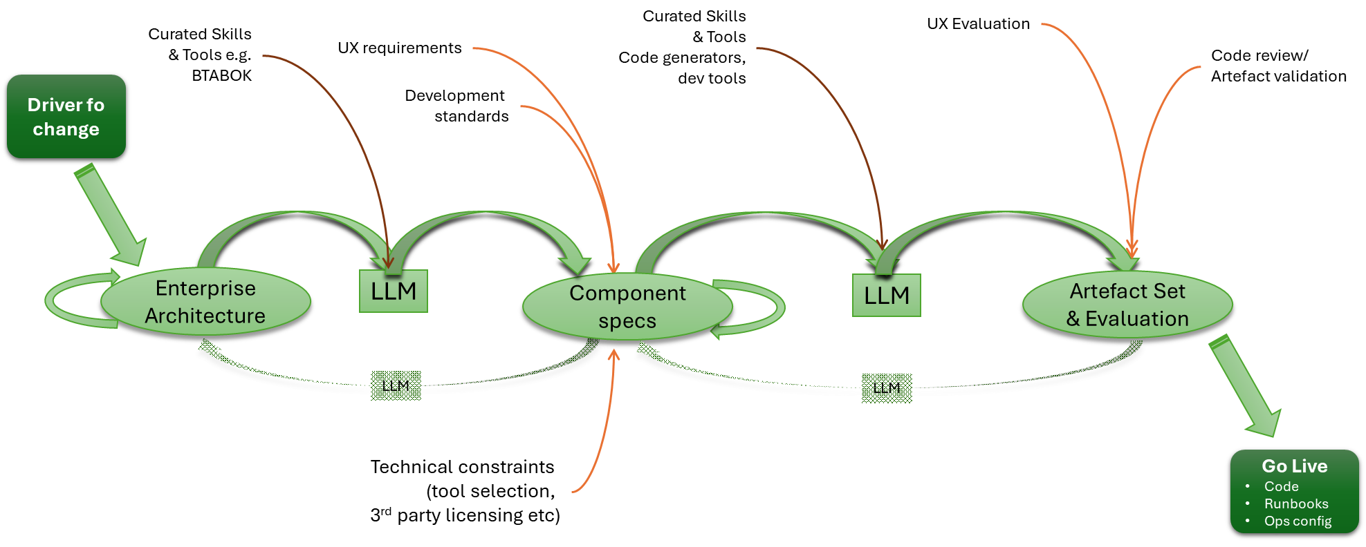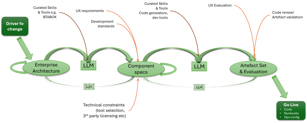 As we’ve worked through much of this picture, the irony is that, in many respects, we’re no further forward. We can still make the same mistakes (failing to work through the NFRs properly, failing to define what should happen when something is wrong – aka ‘unhappy paths’, which make recovery simpler). We just have coding and document writing speed shift from 30-40Hz (the speed of a keyboard warrior) to GHz. The same problems can occur because influential decisions are still human (and remember, LLMs are, at their heart, just a computational representation of common thinking (wisdom of crowds, you might say) and therefore still vulnerable).