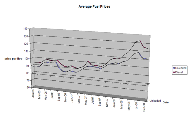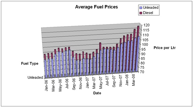 The Telegraph a running a campaign with a petition to get the 2p price rise scheduled for October on fuels stopped, and to take actions to slow the rate that fuel prices are increasing. As you’ll have seen by my previous posts fuel costs are increasing at whole percentage points per month (rather than per year) at the moment. PetrolPrices.com have a range of figures reporting fuel prices as high as £1.37 per litre in parts of the country. Although the principal to slowly increase taxation on fuel to help fund public transport and encourage green activity maybe fun, the current rate of change is starting to make a notable impact on inflation, sufficiently so that it has the Mervyn King the head of the Bank of England has identified it as a factor on any number of occasions now.