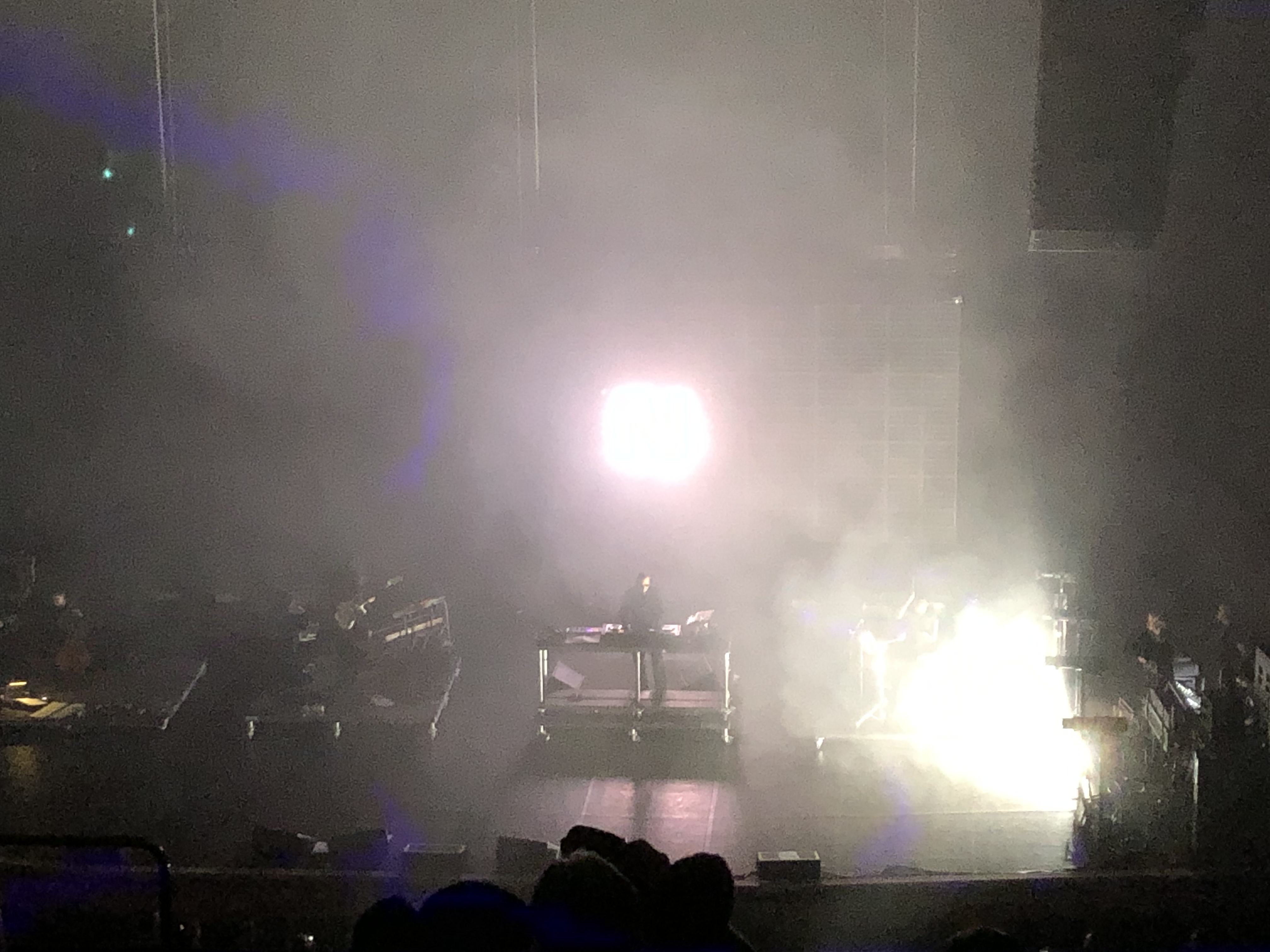 No live locals, as a result, the staging certainly didn’t have a central focus, everyone was with their instruments. Even Moby who crosses genres, as a live artist is in front of the other musicians or moving around the stage when not using a singer. Like any rock concert, the performance ebbed and flowed with raising and lowering of the tempo. With the slower pieces being the more cinematic pieces like Heaven.