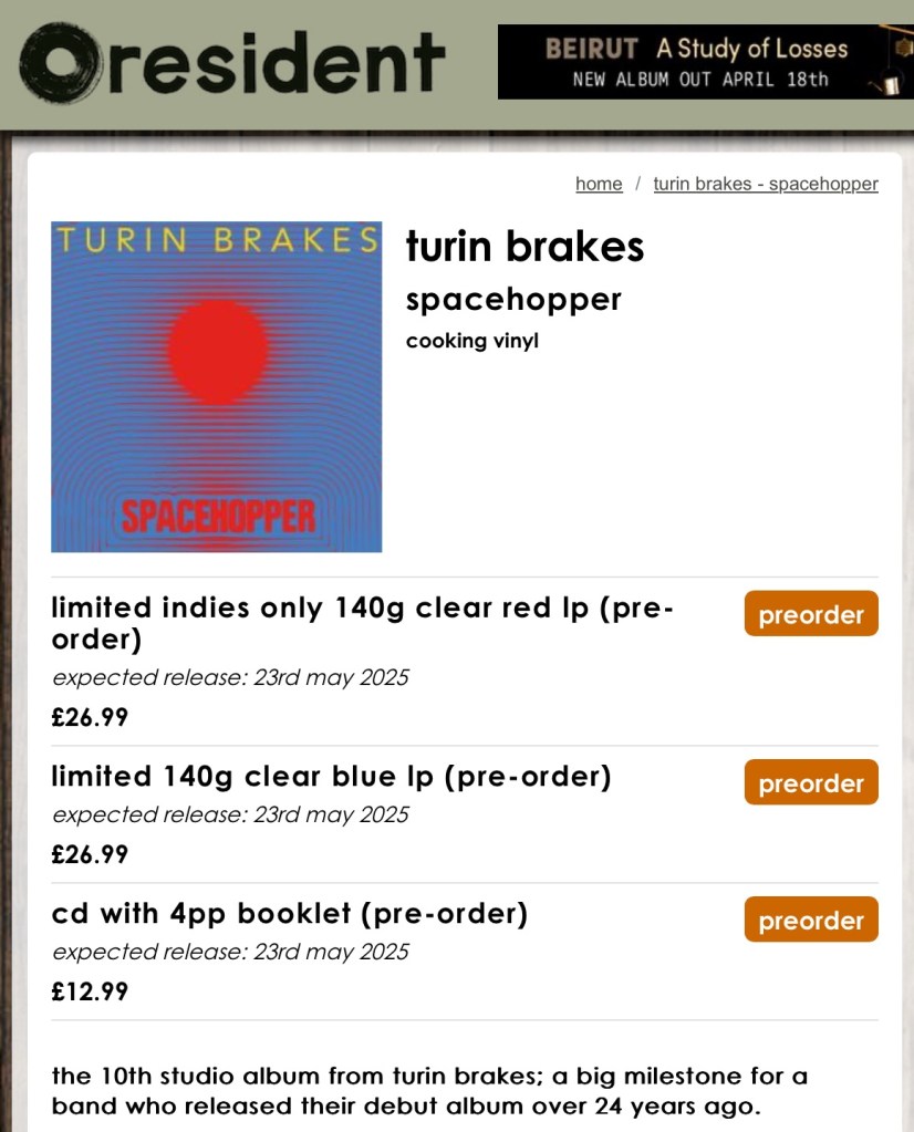 Resident Music details for the new Turin Brakes album, vs the band’s (label-managed) website