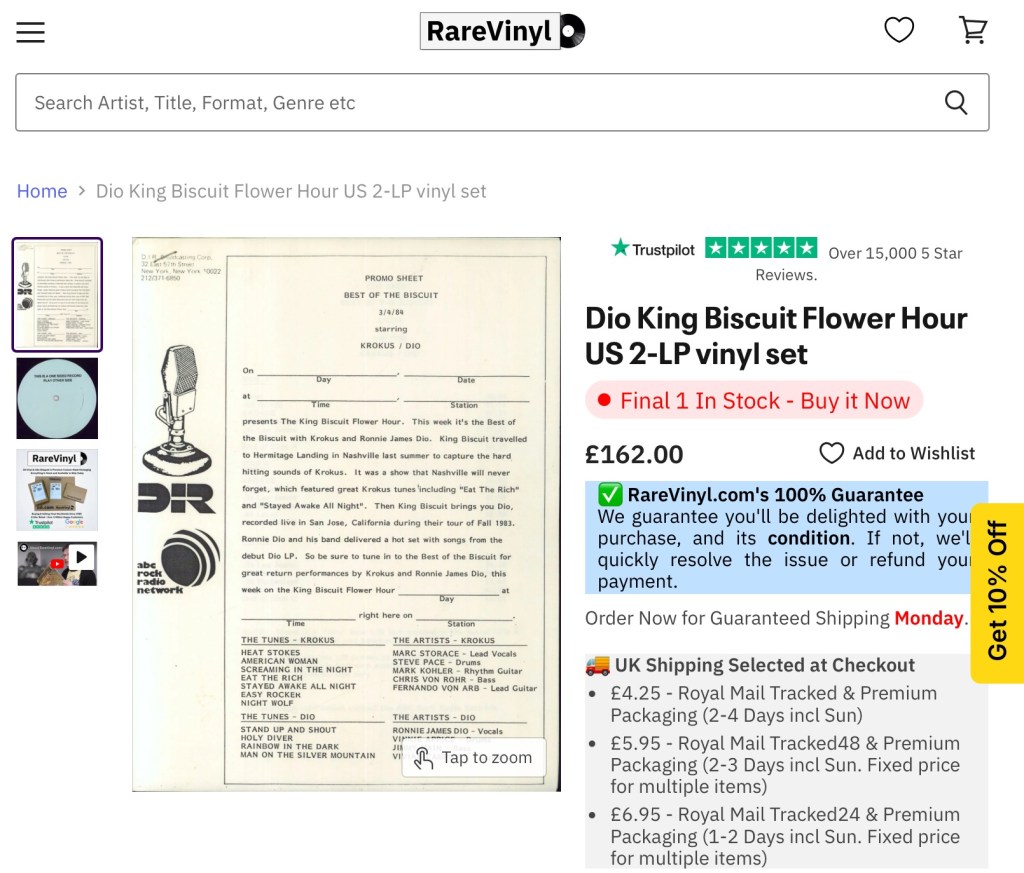 However, there are some easy value propositions, such as pressed broadcasts like King Biscuit Flower Hour and BBC Top of the Pops, which had limited pressings made so that the vinyl copies could be distributed to regional radio stations.