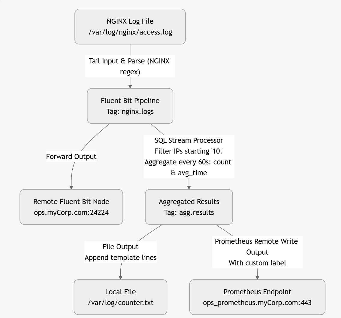 /var/log/nginx/access.log] -->|"Tail Input & Parse (NGINX regex)"| B[Fluent Bit Pipeline