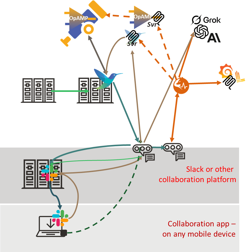 A lot of these tools focus on detection and diagnostics, and steer you to the relevant runbooks, there seems to be less said about how runbooks can be translated into remediation actions that can be executed. The ability to translate runbooks into executable steps will require either tooling via MCP or custom models with suitable embedded functions. Whichever approach is adopted, having a well-understood control plane, such as Kubernetes, will make it easier. But not everything is native K8s. Lots of organizations still use just virtualization, or even bare metal. We also see this with cloud vendors that offer bare-metal services due to the need for maximum compute horsepower. To address these scenarios from a centralized control, either needs to allow remote access (ssh tunnels) to all the nodes, or a means to work with a distributed tooling mechanism, which is what we had with our original chatops idea and the possibilities offered through OpAMP.