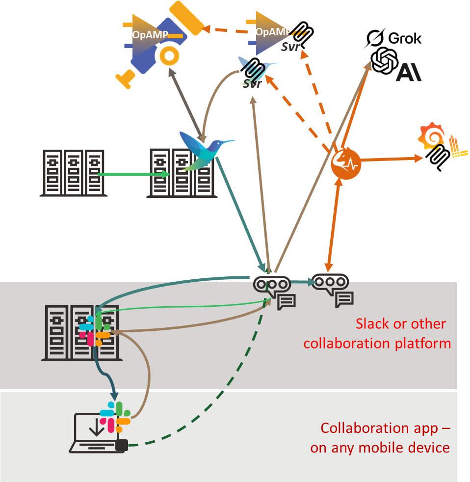 A lot of these tools focus on detection and diagnostics, and steer you to the relevant runbooks, there seems to be less said about how runbooks can be translated into remediation actions that can be executed. The ability to translate runbooks into executable steps will require either tooling via MCP or custom models with suitable embedded functions. Whichever approach is adopted, having a well-understood control plane, such as Kubernetes, will make it easier. But not everything is native K8s. Lots of organizations still use just virtualization, or even bare metal. We also see this with cloud vendors that offer bare-metal services due to the need for maximum compute horsepower. To address these scenarios from a centralized control, either needs to allow remote access (ssh tunnels) to all the nodes, or a means to work with a distributed tooling mechanism, which is what we had with our original chatops idea and the possibilities offered through OpAMP.