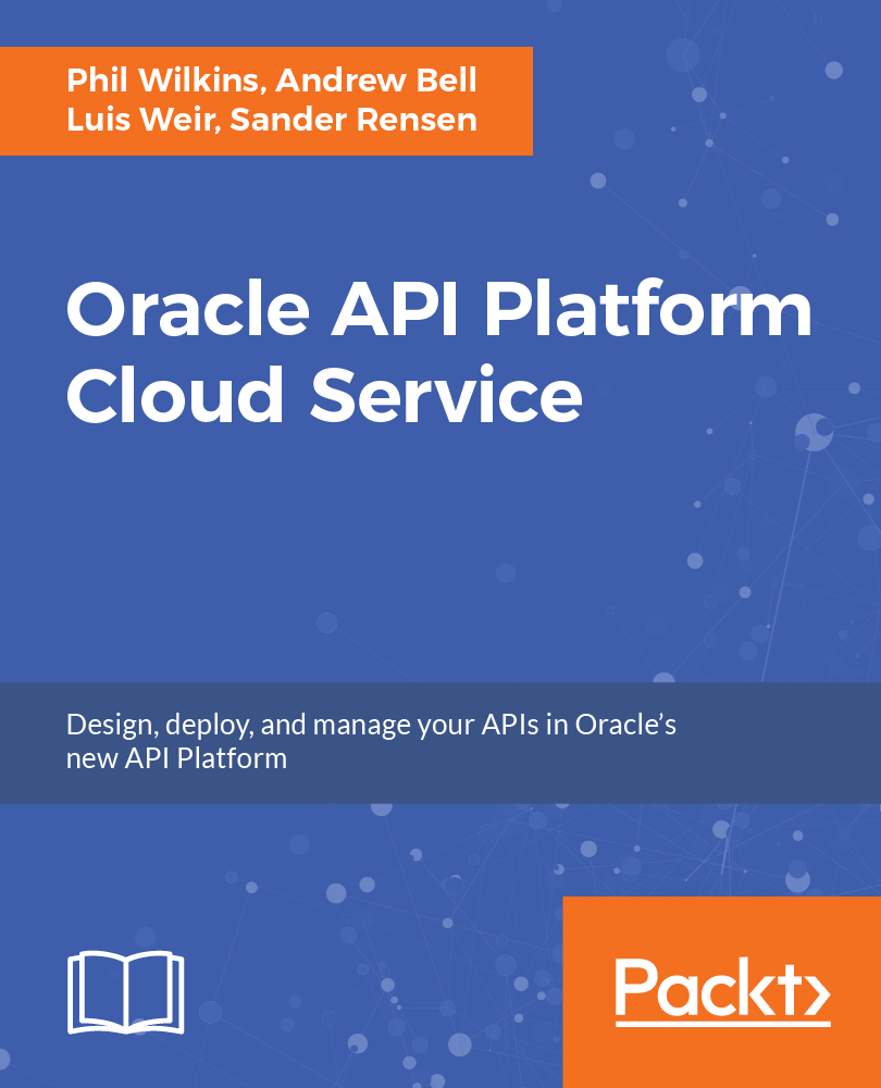 After months of labour, the arrival of new family members for a couple of the authors the Implementing Oracle API Platform Cloud Service book as finally been published. The book has been included into Packt’s Expert series so, earns(?) the privilege of having photos of the authors on the cover. The book can be purchased directly from Packt (go here) or from book retails such as Amazon (here).