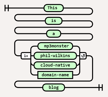 As the expression goes – ‘a picture says a thousand words’, there might not be a thousand words, but there is enough to suggest a visual representation will help. Even if the visual only helps us traverse the use of the detailed syntax. So we’ve use our favoured visual representation – the railroad diagram and the tool produced by Tab Akins to create the representation. We’ve put the code and created images for the syntax in my GitHub repository here, continuing the pattern previously adopted.